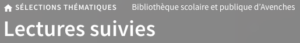Le catalogue en ligne de la bibliothèque se trouve à cette adresse : Les bibliothèques d’Avenches et Vully-les-Lacs, il sert à consulter la disponibilité des livres présents à la bibliothèque.